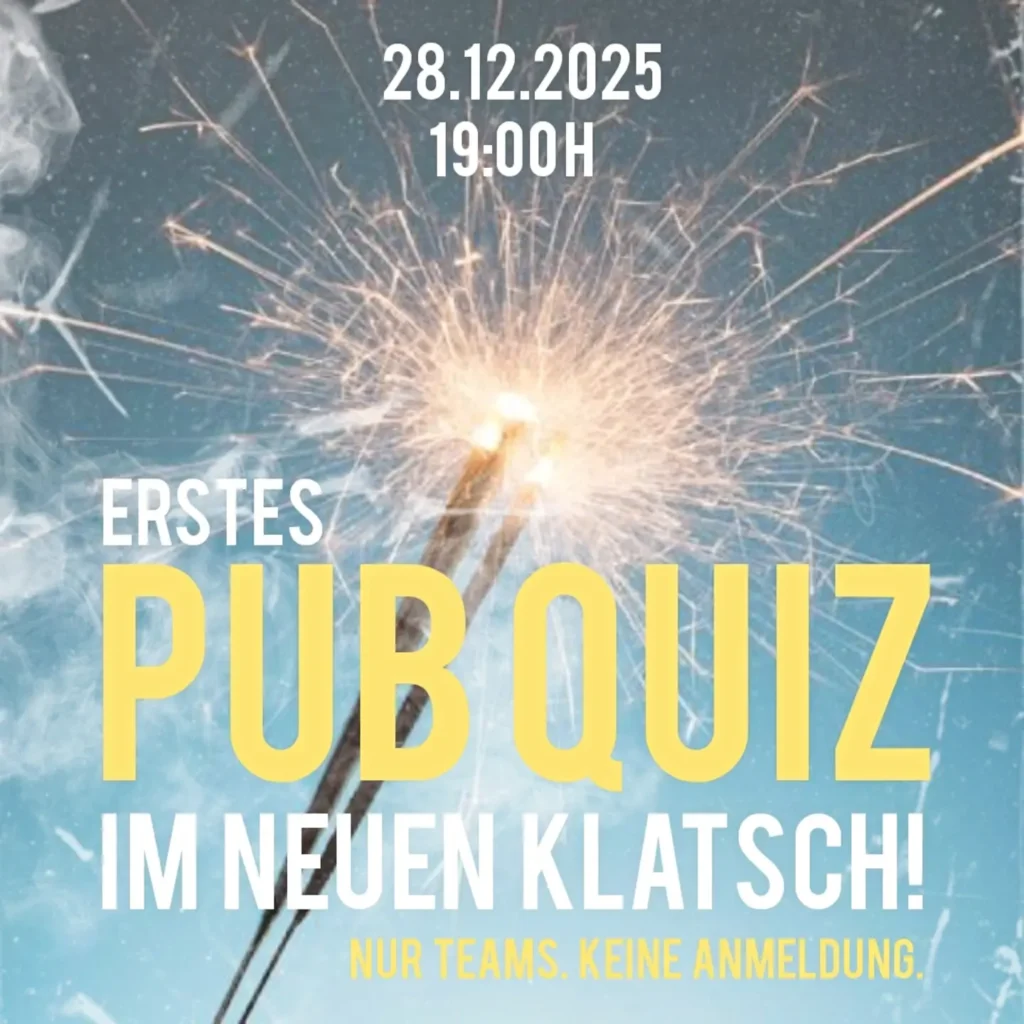 Am 28.12. geht’s auch mit dem allseits beliebten Pub Quiz weiter. Alles bleibt beim Alten: Brudi Carrell und Prank Elstner präsentieren knifflige Fragen, ambitionierte Unterhaltung und mittelmäßige Preise. Gespielt wird im Team, wer zuerst kommt, kriegt nen Platz. Klatsch öffnet um 18 Uhr, Quiz beginnt um 19 Uhr. Alles Weitere vor Ort, wir freuen uns ❓❔❤️🤍